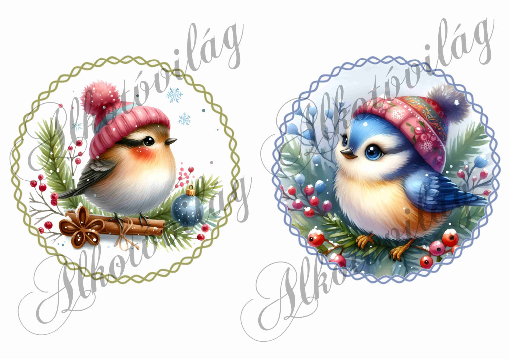 Kismadarak fenyőágon 13,5 cm-es csavart körökben