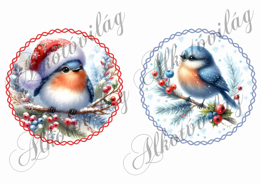 Kismadarak fenyőágon 13,5 cm-es csavart körökben 2