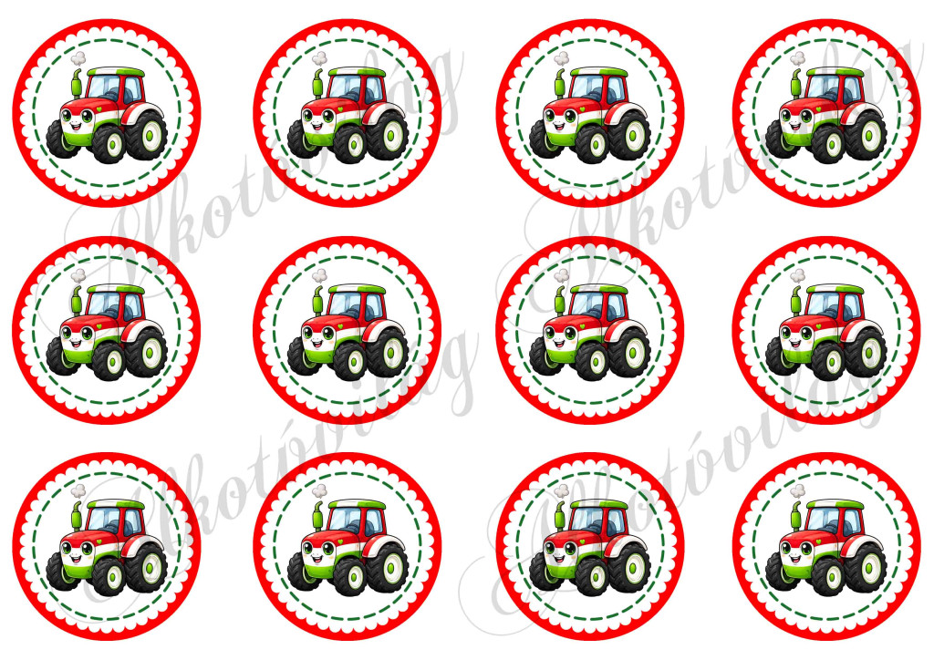 Kokárdák cuki traktorral 6 cm-es körökben