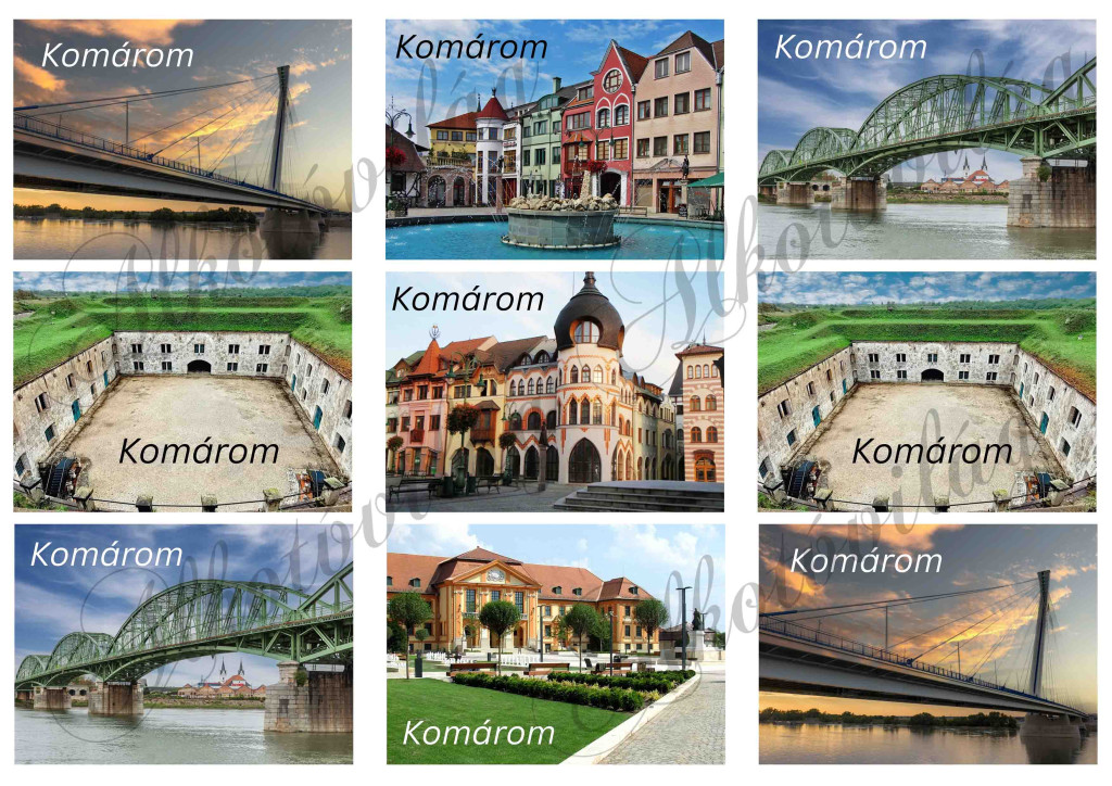 Komárom nevezetességei KOMÁROM felirattal 9 x 6 cm - HŰTŐMÁGNES, AJÁNDÉKKÍSÉGŐ készítéshez