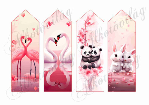 Könyvjelző kisállatokkal- FLAMINGÓ, HATTYÚ, PANDA, NYUSZI - VALENTIN NAPRA, ANYÁK NAPJÁRA - 16,5 x 5,5 cm - Több mint 20 alapanyagon elérhető.