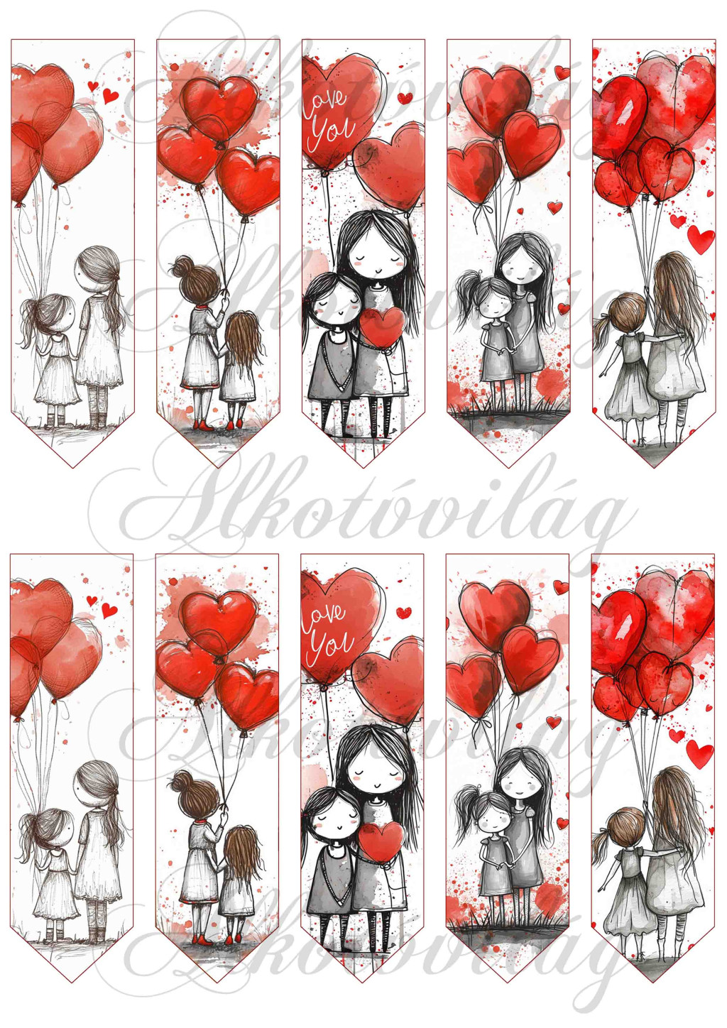 Könyvjelzők anyák napi mintákkal, szíves lufikkal - 12 x 3,5 cm