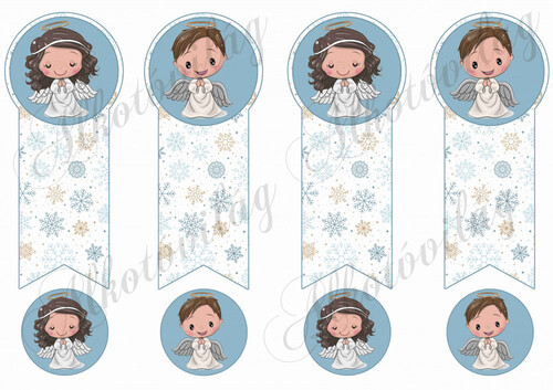 Könyvjelzők barna hajú kislány és kisfiú angyalkákkal - Több mint 20 alapanyagon elérhető.