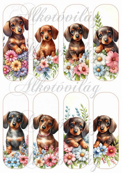 Könyvjelzők cuki tacskókkal és virágokkal - 13 x 4,3 cm - Több mint 20 alapanyagon elérhető.