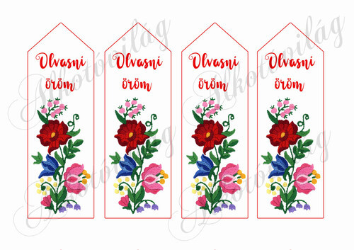 Könyvjelzők gyönyörű kalocsai mintával 16,5 x 5,5 cm - OLVASNI ÖRÖM felirattal - Több mint 20 alapanyagon elérhető.