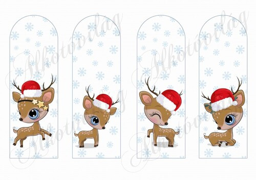 Könyvjelzők hópelyhekkel cuki mikulássapkás szarvasokkal - Több mint 20 alapanyagon elérhető.