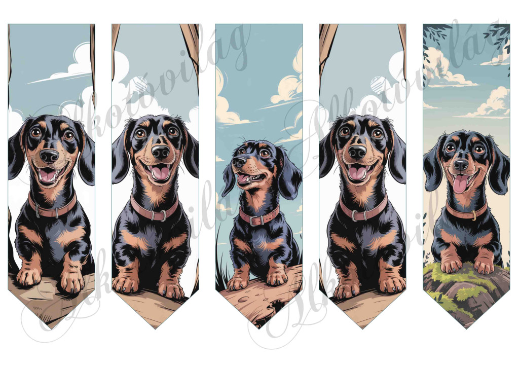 Könyvjelzők jókedvű tacskó kutyusokkal - 17,5  X 5 cm