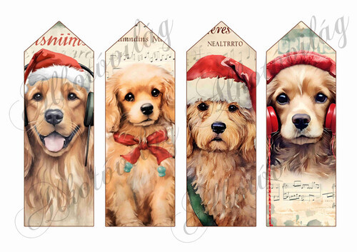 Könyvjelzők karácsonyi kutyusokkal 16,5 x 5,5 cm - Több mint 20 alapanyagon elérhető.