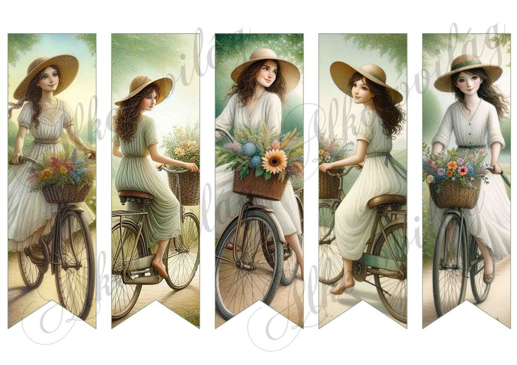 Könyvjelzők kerékpáros lánnyal ceruzarajz stílusban 17 X 5 cm