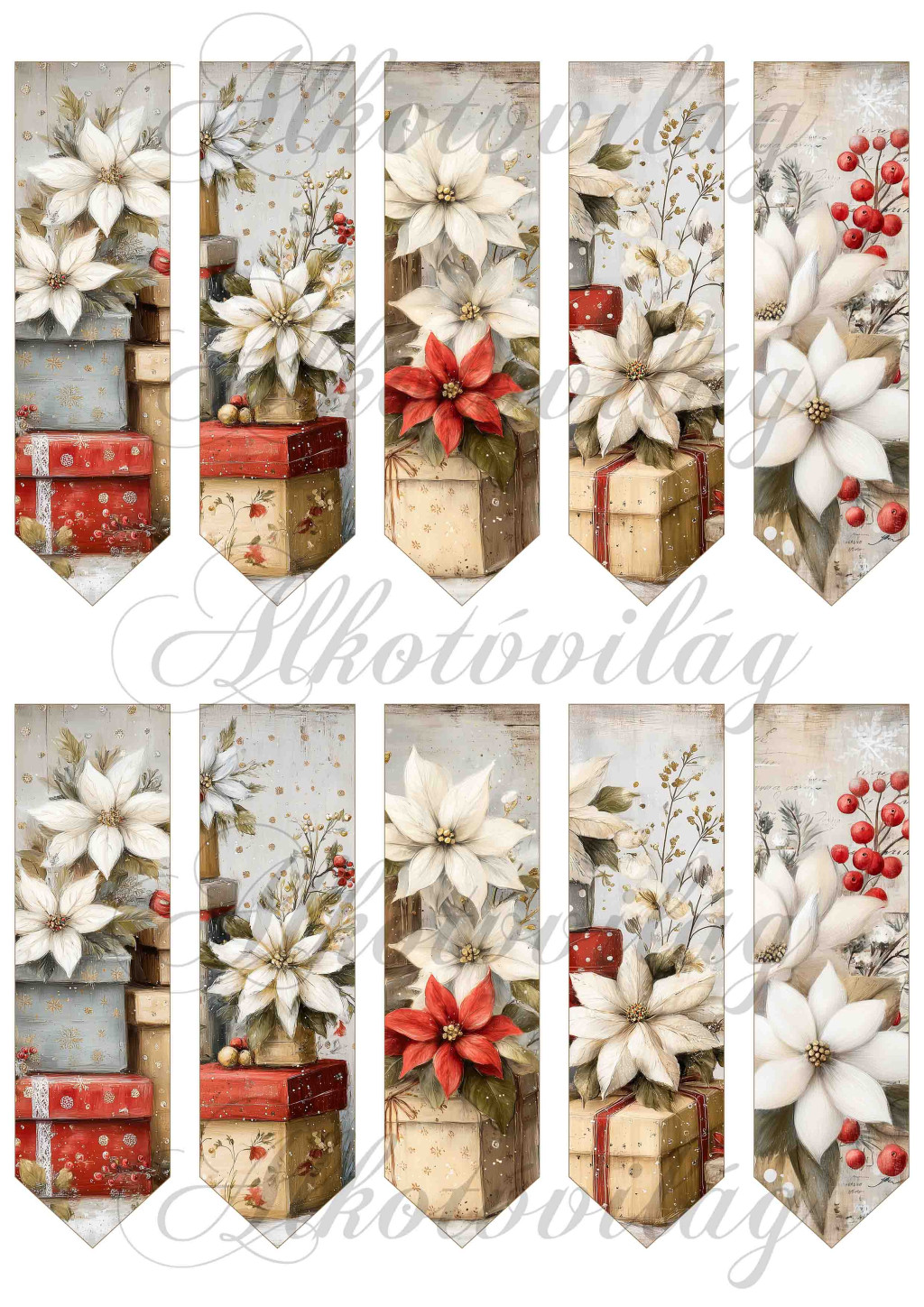 Könyvjelzők mikulásvirágokkal - 12 x 3,5 cm