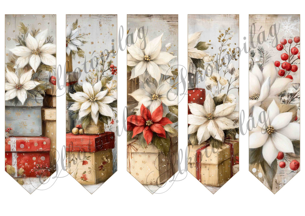 Könyvjelzők mikulásvirágokkal - 17,5 x 5 cm