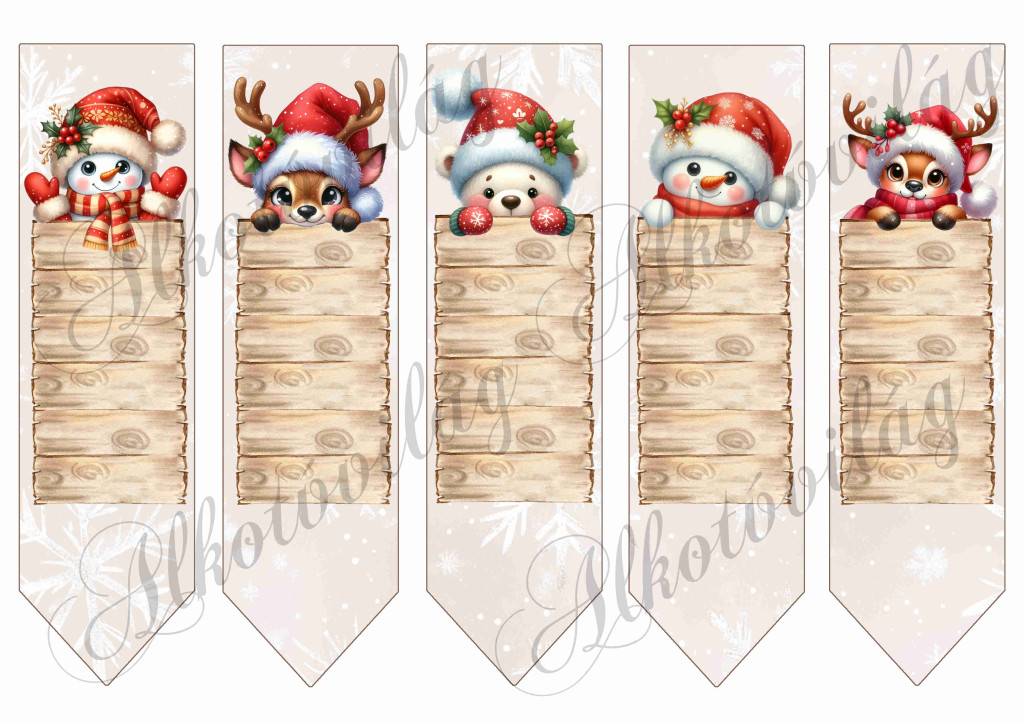 Könyvjelzők táblát tartó cuki figurákkal - szarvas, hóember, maci - 18,5 x 5 cm - Több mint 20 alapanyagon elérhető.