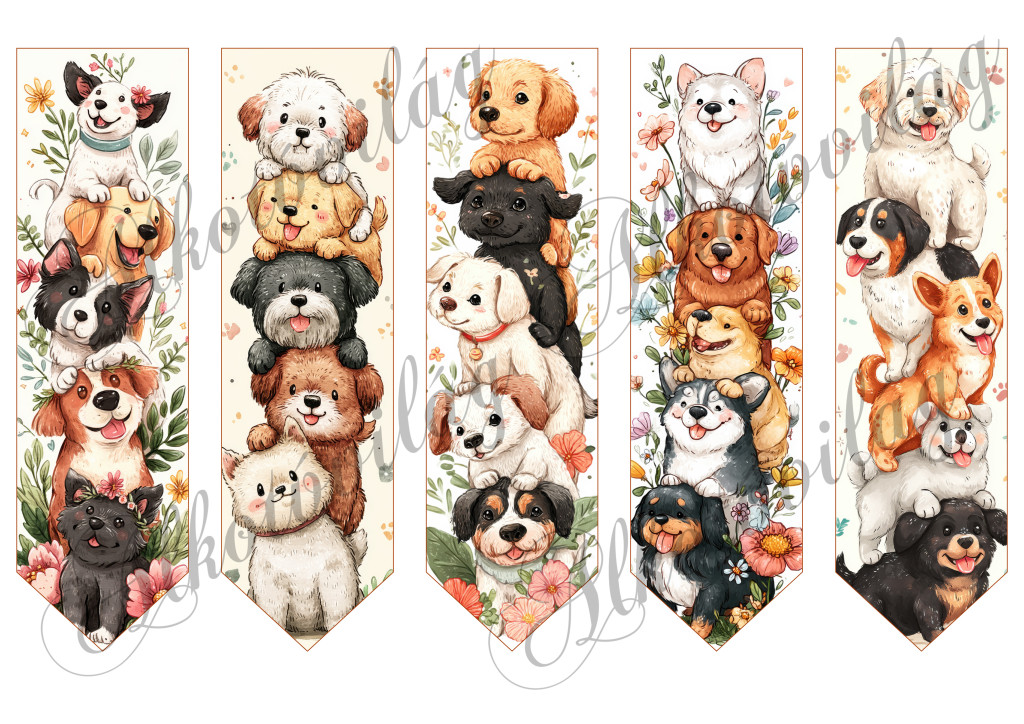 Könyvjelzők vicces kutyusokkal - 17,5 X 5 cm