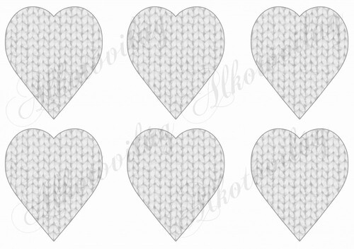 Kötött mintájú szívek szürkés árnyalatban - 6 db - Több mint 20 alapanyagon elérhető.