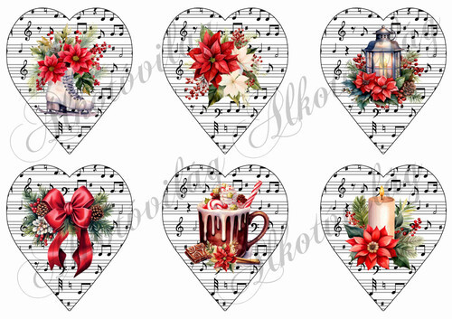 Kottás szívek karácsonyi motívumokkal - 9 cm magas - Több mint 20 alapanyagon elérhető.
