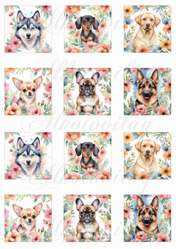 Kutyusok virágokkal 5,5 x 5,5 cm-es négyzetekben - Több mint 20 alapanyagon elérhető.
