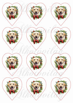 Labrador kutyus karácsonyi koszorúban 6,5 cm-es szívekben - Több mint 20 alapanyagon elérhető.