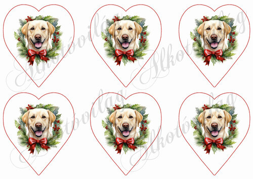 Labrador kutyus karácsonyi koszorúban 9 cm-es szívekben - Több mint 20 alapanyagon elérhető.