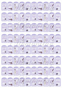 Levendulás mini kártyák különféle feliratokkal - 3,5 cm