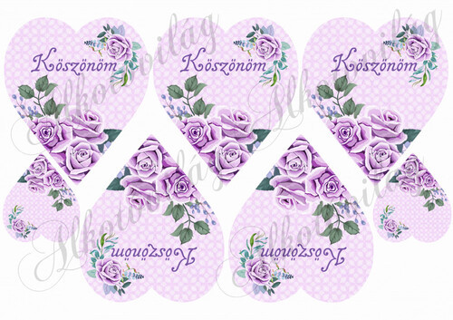 Lila rózsák lila szíveken KÖSZÖNÖM felirattal - Több mint 20 alapanyagon elérhető.