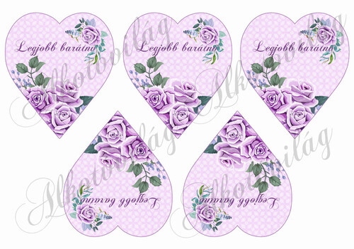 Lila rózsás szívek LEGJOBB BARÁTNŐ felirattal - 12,5 x 11 cm - Több mint 20 alapanyagon elérhető.