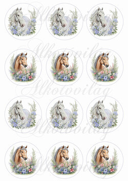 Lovak virágkoszorúkkal 6 cm-es körökben - Több mint 20 alapanyagon elérhető.