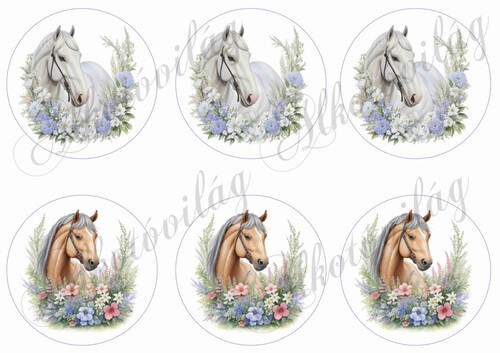 Lovak virágkoszorúkkal 9 cm-es körökben - Több mint 20 alapanyagon elérhető.
