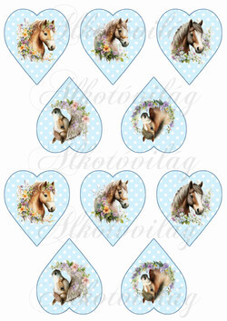 Lovak virágokkal kék alapon fehér pöttyös szíveken - KICSIBEN