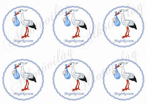 Megérkeztem kék csavart körök gólyával - Több mint 20 alapanyagon elérhető.