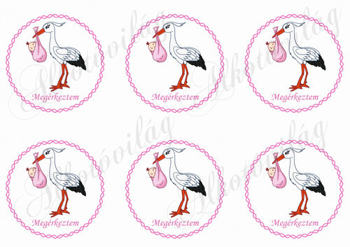 Megérkeztem rózsaszín csavart körök gólyával - Több mint 20 alapanyagon elérhető.