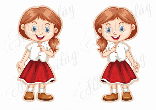 Meseszereplő- vörösesbarna hajú lányka piros szoknyában - Több mint 20 alapanyagon elérhető.