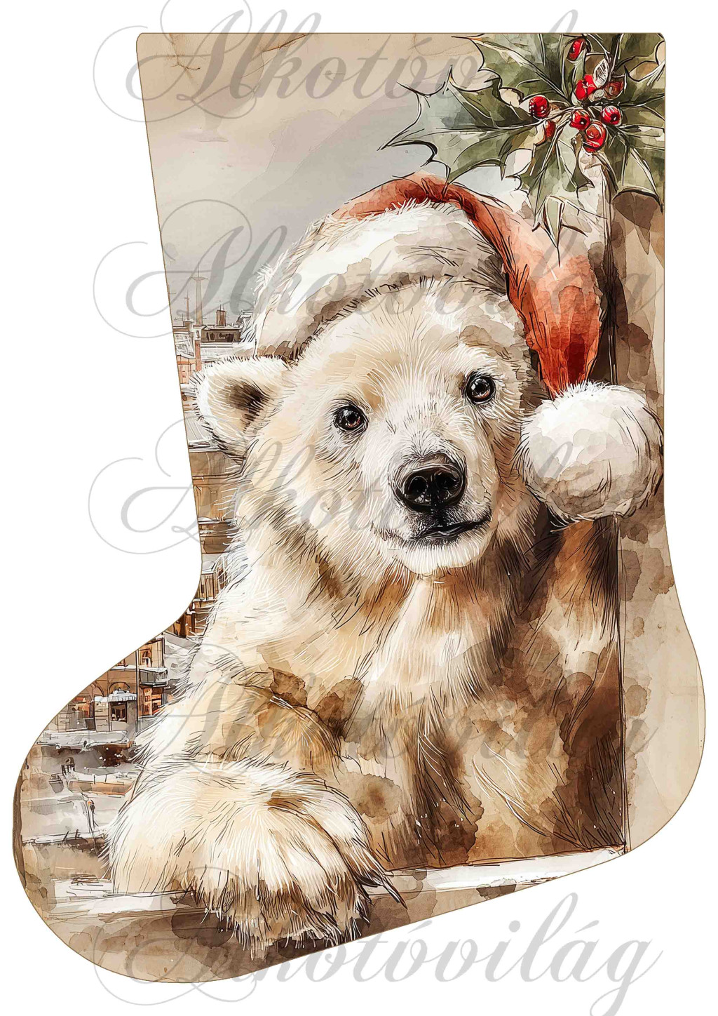Mikuláscsizmák vintage karácsonyi hangulatban jegesmacival