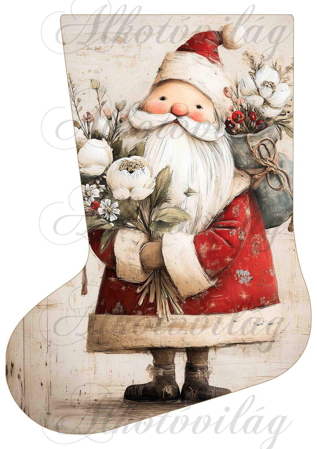 Mikuláscsizmák vintage stílusban mikulással és virágokkal