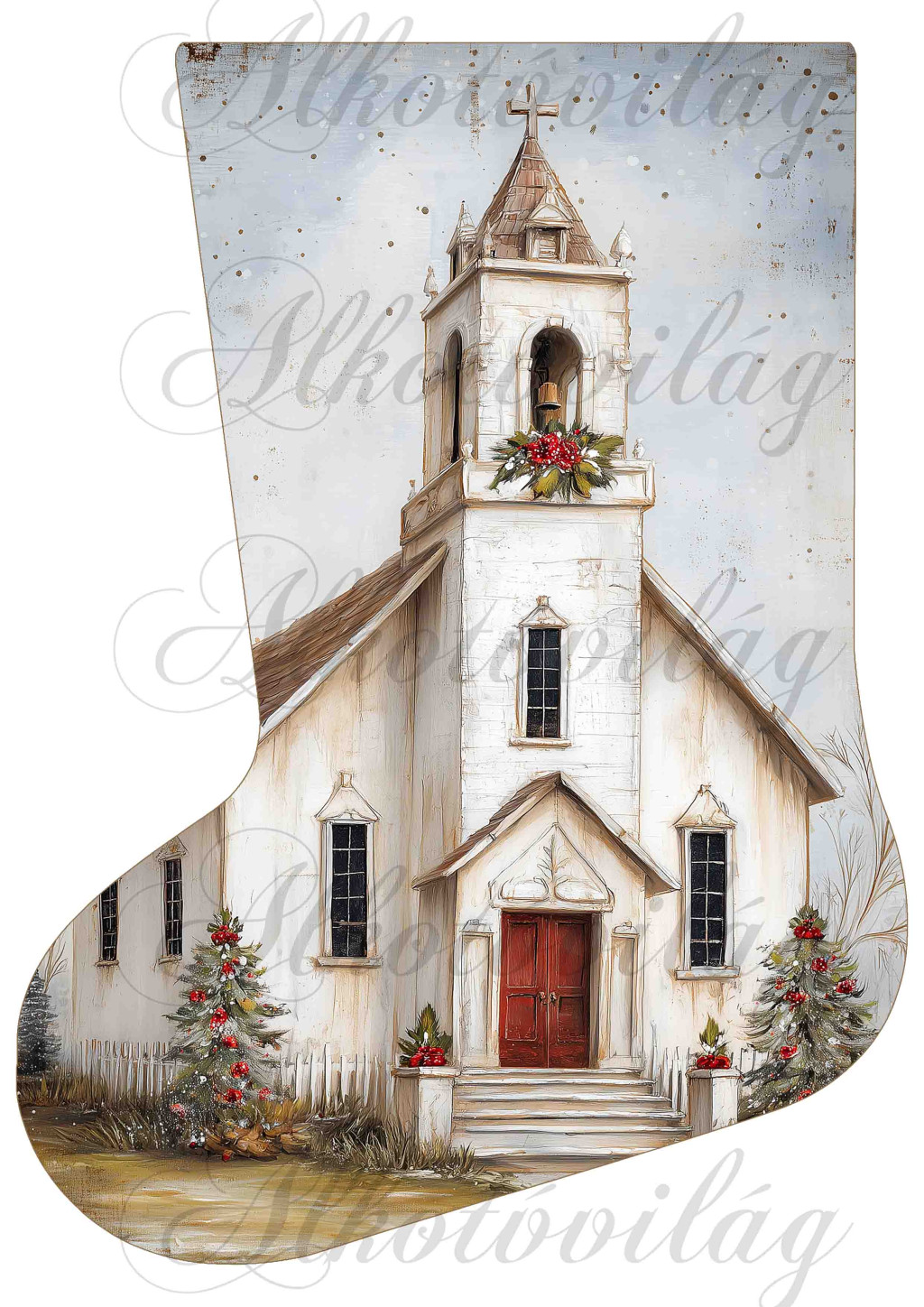Mikuláscsizmák vintage stílusban templommal