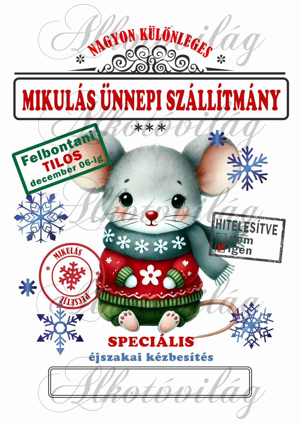 Mikulászsák cuki, kicsi egér karácsonyi ruhában - december 06-ra