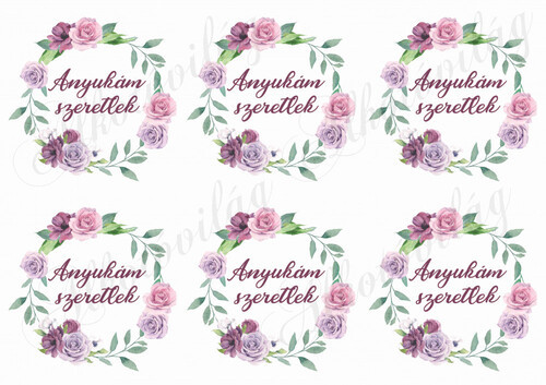Rózsás koszorúk anyukám szeretlek felirattal