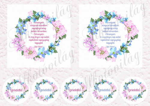 Virágos keretek anyáknapi idézetekkel 12,5 cm-es hímzőkerethez kék-rózsaszín