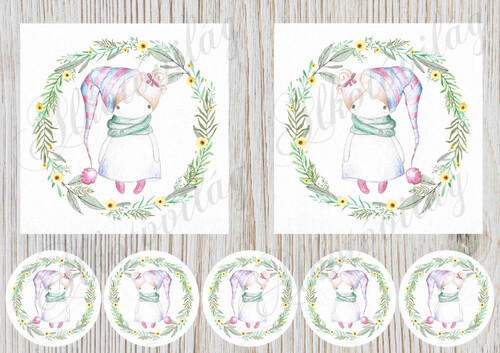 Rajzolt kislányok csíkos sapiban 12,5 cm-es hímzőkerethez - Több mint 20 alapanyagon elérhető.