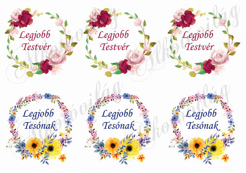 Testvér feliratos virágos koszorúban - Több mint 20 alapanyagon elérhető.