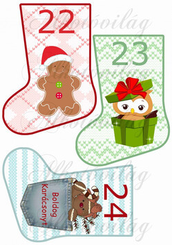 Karácsonyi zoknik – adventi naptár - Több mint 20 alapanyagon elérhető.