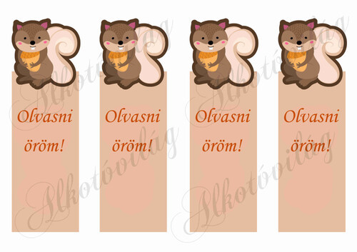 Mókusos könyvjelzők - OLVASNI ÖRÖM felirattal
