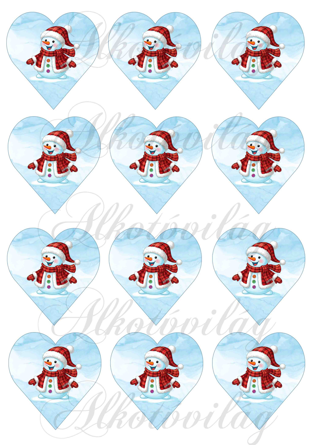 Mosolygós hóember 6,5 cm magas szíveken