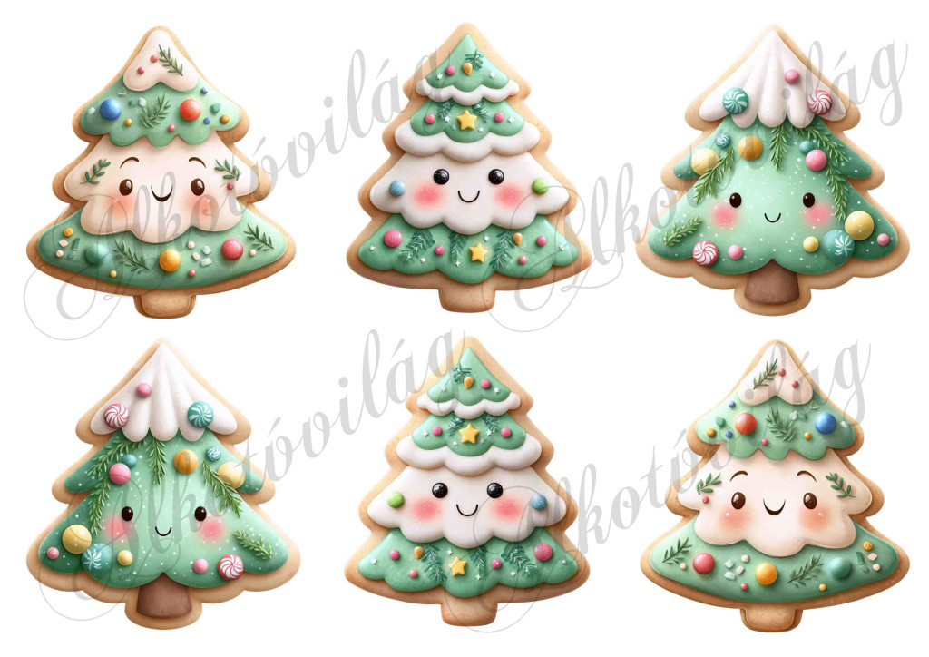 Mosolygós mézeskalács fenyőfák - kb. 9 cm magasak