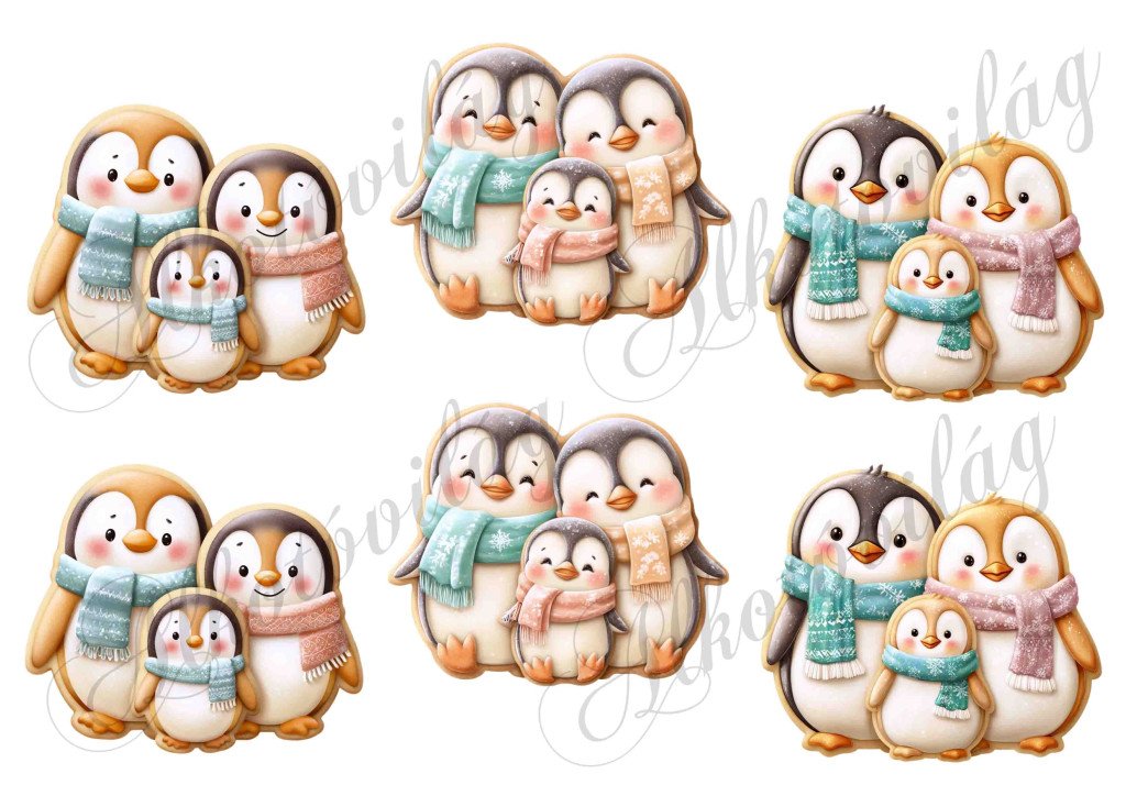 Mosolygós mézeskalács pingvin család - kb. 9 cm szélesek