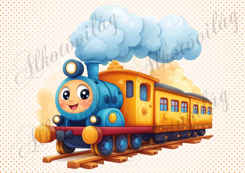 Mosolygós vonat nagy füsttel - PÁRNABLOKK, VÁSZONTÁSKA BLOKK, PATCHWORK BLOKK, UZSONNÁSTASAK BLOKK