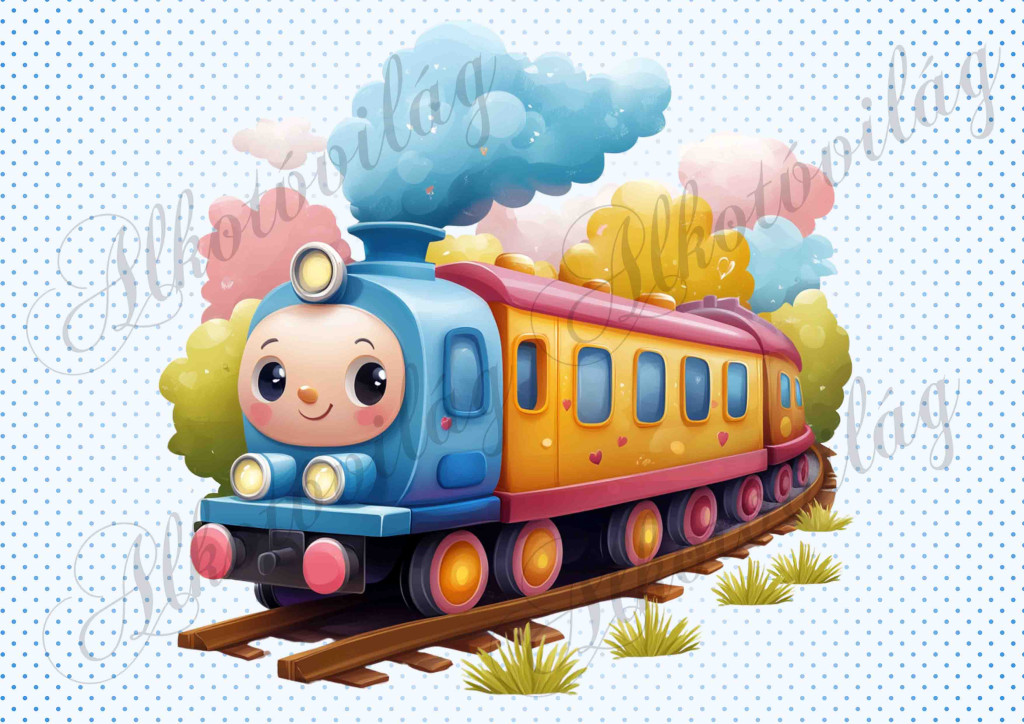 Mosolygós vonat színes füsttel - PÁRNABLOKK, VÁSZONTÁSKA BLOKK, PATCHWORK BLOKK, UZSONNÁSTASAK BLOKK