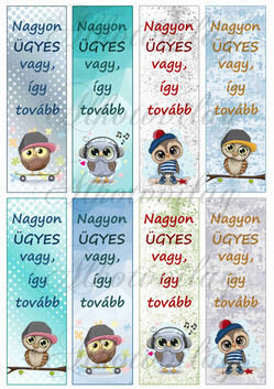 Motivációs könyvjelzők cuki bagoly mintákkal fiús színekben - Több mint 20 alapanyagon elérhető.