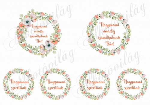 Nagymami mindig számíthatunk rád felirat virágos koszorúkban 9,5 cm - Több mint 20 alapanyagon elérhető.