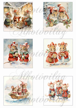 Négyzetek karácsonyi kisegerekkel 8 x 8 cm - Több mint 20 alapanyagon elérhető.