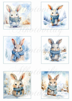 Négyzetek téli nyuszikkal 8 x 8 cm - Több mint 20 alapanyagon elérhető.